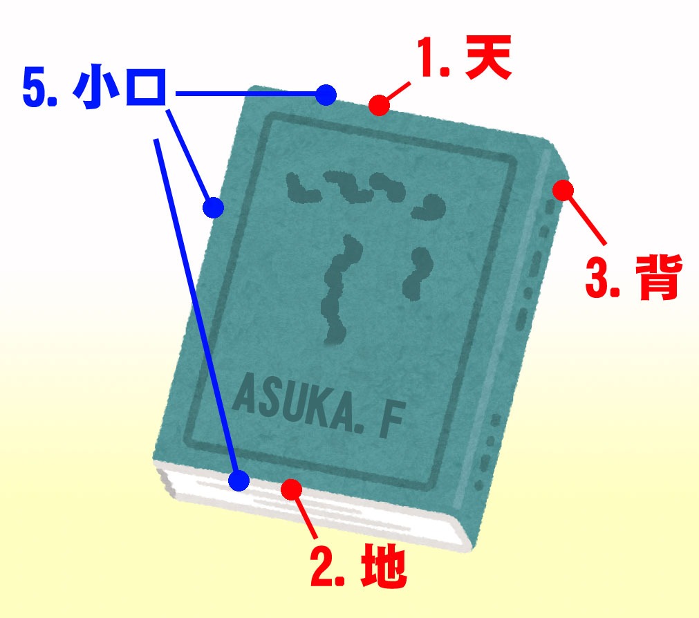 5.「小口(こぐち)」=のどを除いた天、地を含む3辺。