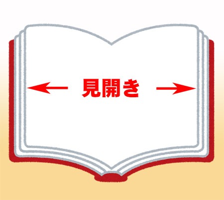 10.「見開き」=本を開いた時、ページが左右に開いた状態。「見開きページ」ともいう。