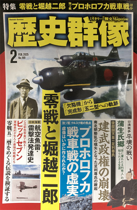「歴史群像 No.189 2025年2月号」では特集「零戦と堀越二郎」(文=古峰文三)を組んでいます。
