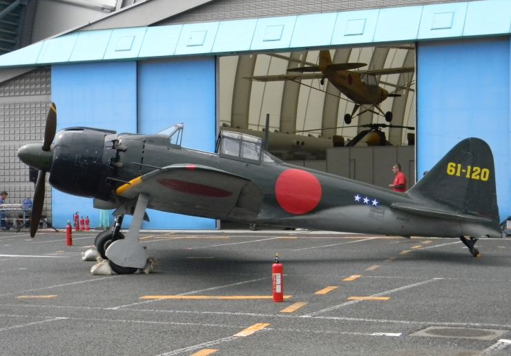 ※米軍に鹵獲された零戦五二型(A6M5)。唯一の飛行可能な機体。Planes of Fame Air Museum 所蔵