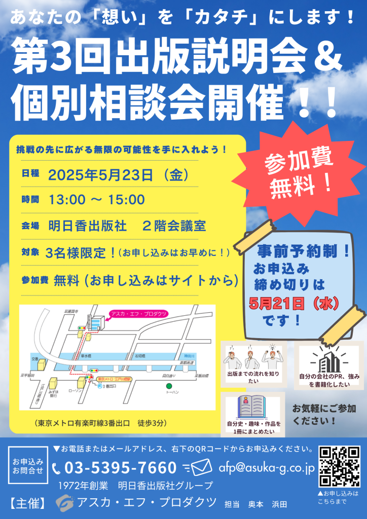 出版されるご計画がなくても大丈夫です。わいわいがやがやとやりましょうか!お待ちいたしております。みなさまの夢をお聞かせください。
